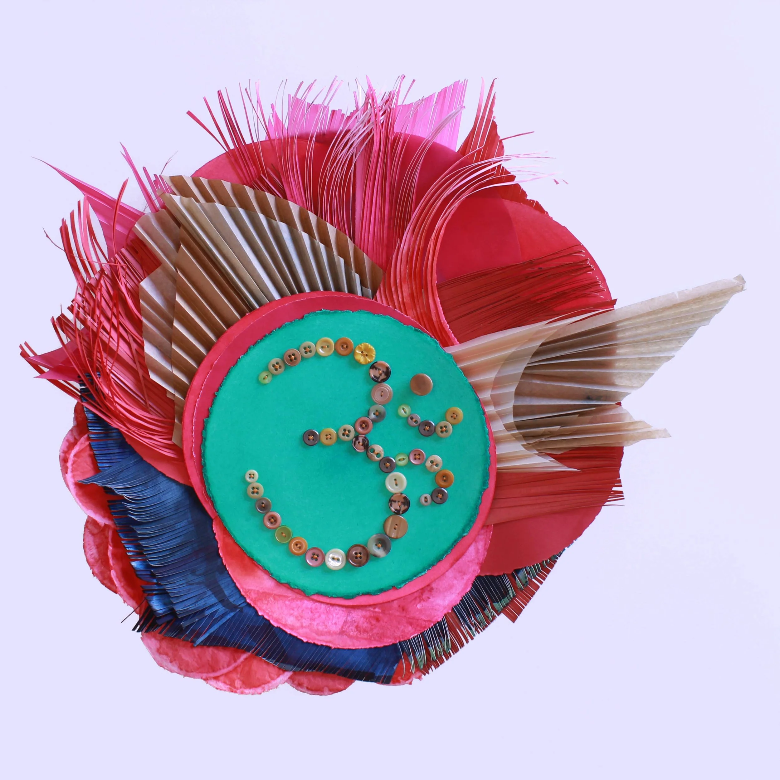 The artwork, made from recycled materials, was intuitively designed and created on the floor of my studio during the sweltering summer of 2022 in Miami Beach (75 days of temperatures at or above 90°F / 32+°C).